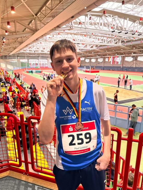 So gelang es Paul bei der Deutschen Meisterschaft in Erfurt 2023, gleich zwei Medaillen zu gewinnen. Eine Bronze im Laufen und die Goldene im Kugelstoßen. Ein großer Erfolg, den wir gern mit ihm zusammen feiern.