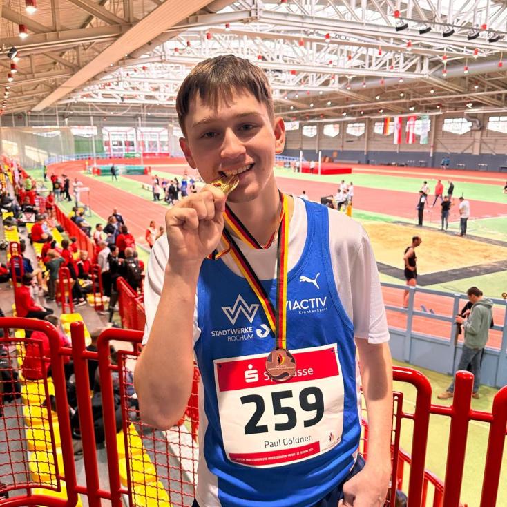 So gelang es Paul bei der Deutschen Meisterschaft in Erfurt 2023, gleich zwei Medaillen zu gewinnen. Eine Bronze im Laufen und die Goldene im Kugelstoßen. Ein großer Erfolg, den wir gern mit ihm zusammen feiern.