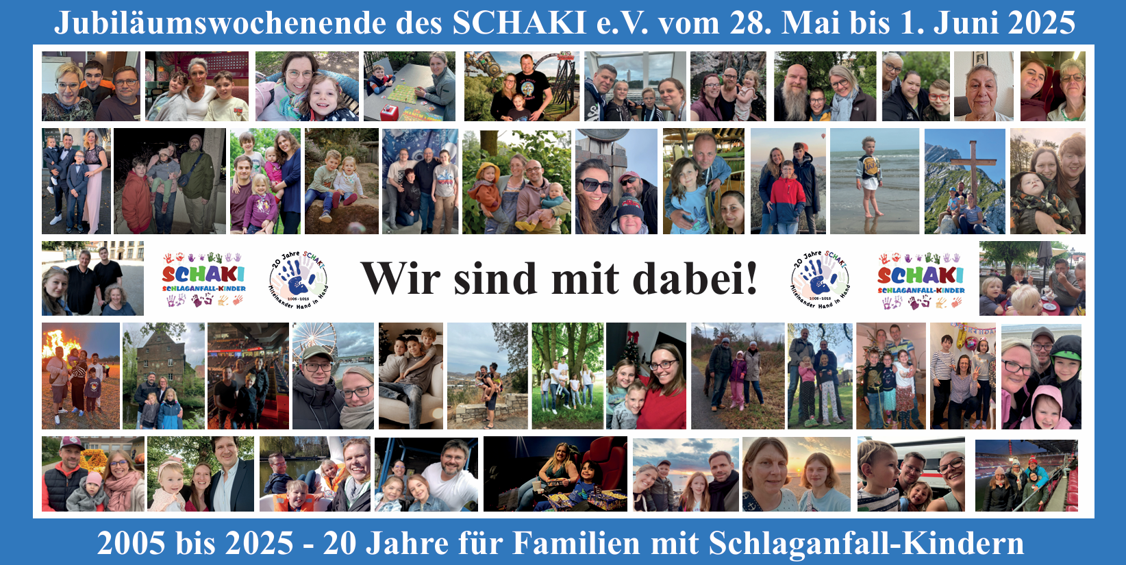 Im Mai 2025 haben wir unsere 20-jährisges Jubiläum an dem Familienwochenende in Dümmerlohlausen mit vielen Aktionen veranstaltet. Mehr zu unseren Veranstaltungen unter: