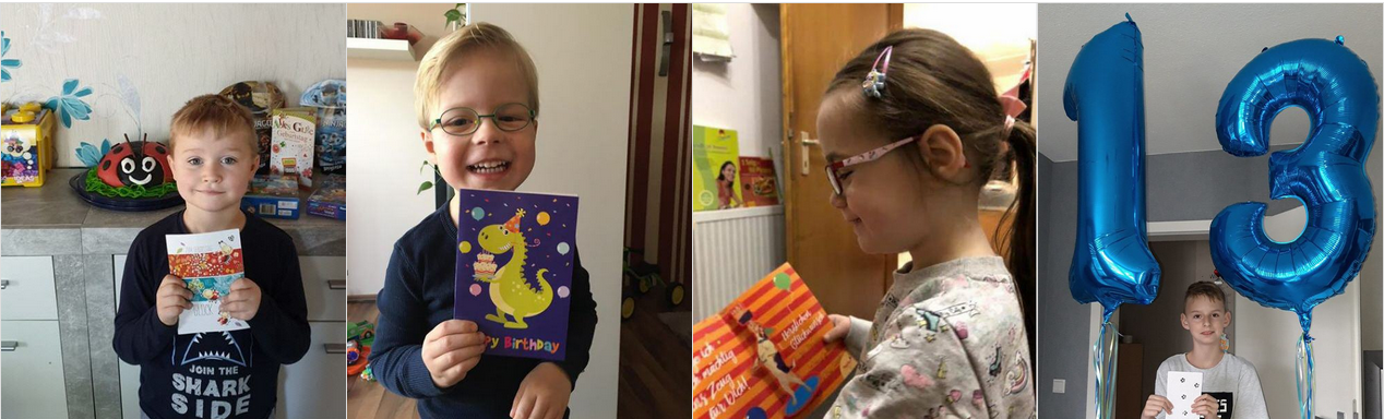 Ein großes Dankeschön geht daher an dieser Stelle an die vielen "Kartenschreiber", die dafür sorgen, dass so viele Kinderaugen an ihrem Geburtstag zusätzlich leuchten. Lieben Dank - denn ohne euch könnten wir nicht so vielen Schlaganfallkindern diese kleine Freude machen!
